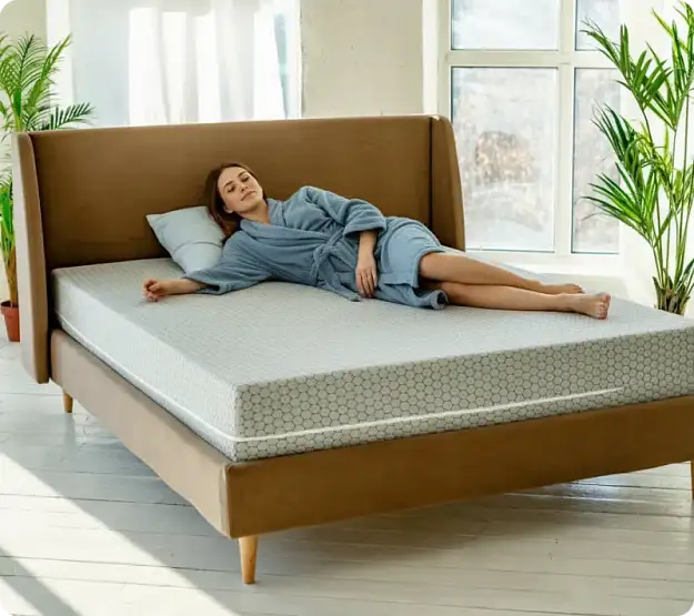 - Пена высокой плотности в основании обеспечивает устойчивость матраса к потере формы, а также гарантирует идеальную основу для анатомически правильного положения тела.